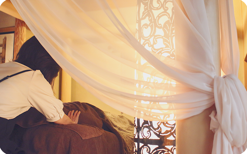 バリ風の落ち着いた空間で、リラックスしながら施術を受けていただけます。